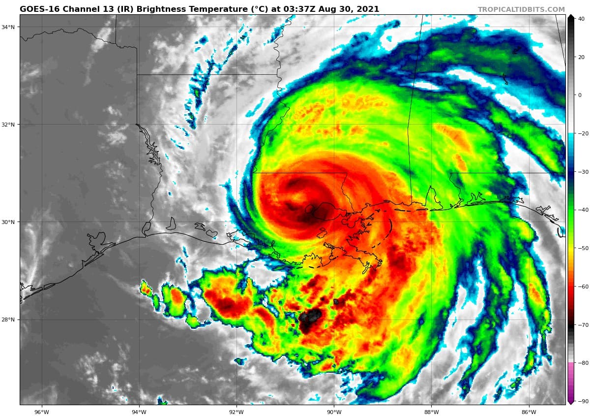 Cet ouragan majeur a touché la Nouvelle-Orléans le 29 août 2021, soit 16 ans jours pour jour après Katrina qui avait impacté la Nouvelle-Orléans le 29 août 2005. Les secteurs les plus impactés furent d'ailleurs distants d'à peine 50km, Katrina entrant dans les terres au niveau de l'embouchure du Mississippi.
