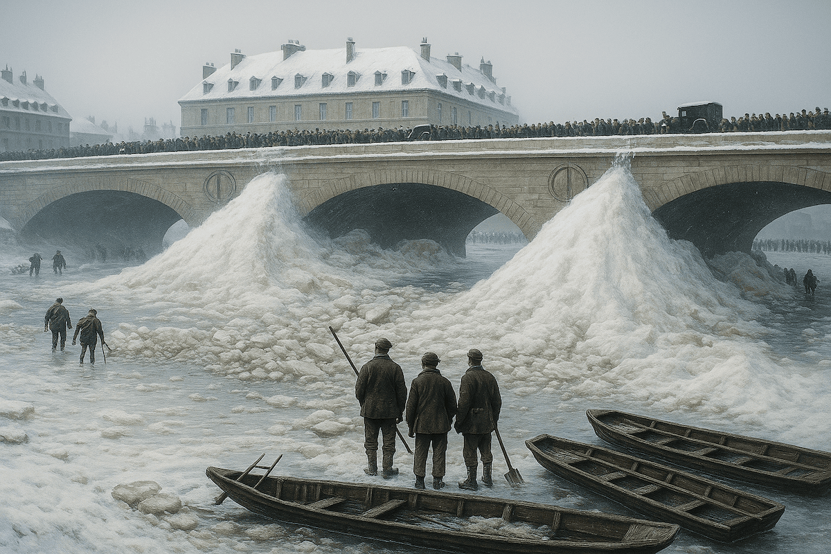 Partout, la glace s’impose. De nombreux fleuves cessent d’écouler et se figent totalement. Sur la Seine, l’épaisseur de la glace atteint des niveaux jamais observés, au point d’être utilisée pour évacuer la neige. À Paris, la température moyenne du mois descend à –8 °C, contre +5 °C habituellement ! Ce froid extrême cause de nombreuses victimes, d’autant que les archives évoquent des pénuries de charbon rendant le chauffage parfois impossible.