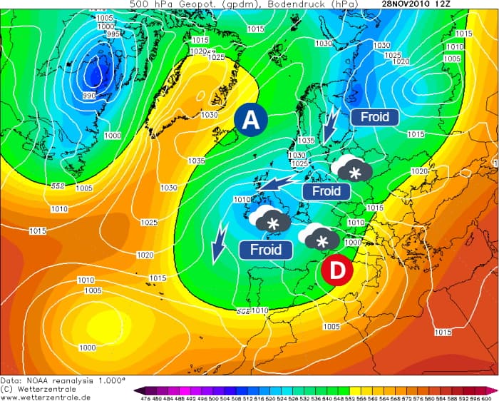 Situation observée sur le continent européen le 28 novembre 2010 - via wetterzentrale.de