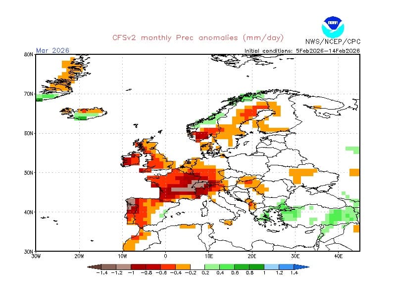 Les tendances pour le mois de mars indiquent même un temps durablement sec. Bien que nous restions prudents, une telle évolution serait un contraste saisissant avec les conditions météorologiques récentes et une excellente nouvelle pour la gestion des crues et inondations. Si la majorité des modèles convergent vers cette prévision, il est essentiel de suivre l’évolution des prévisions dans les prochains jours, car les tendances peuvent changer à une échéance aussi lointaine.