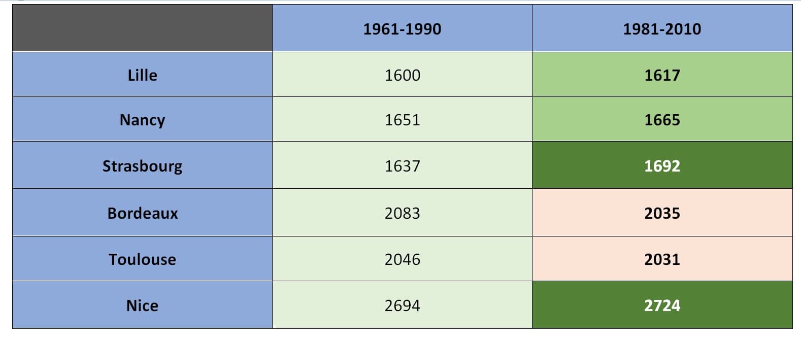• Lille : 1860h au 21 Novembre  contre 1617h en moyenne sur une année