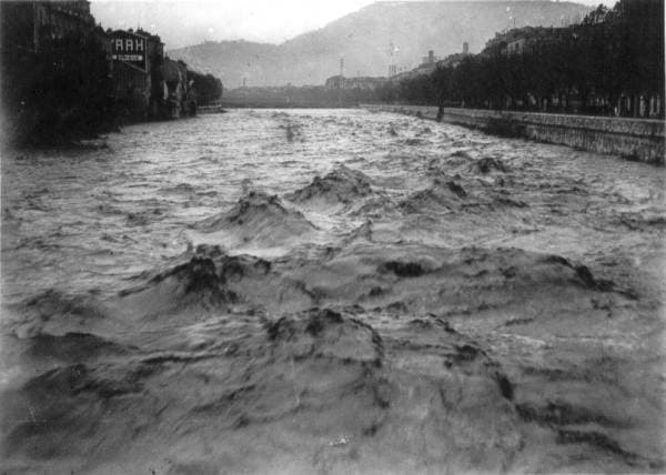 Le Paillon en crue le 17 Novembre 1940 en plein centre-ville de Nice - Via nissalabella.net