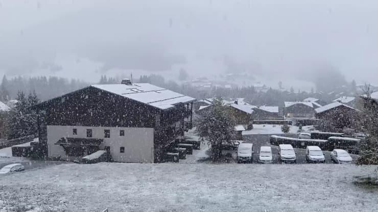 Neige à Praz-sur-Arly (Haute-Savoie) le matin du lundi 26 octobre 2020 - via Mairie de Praz-sur-Arly