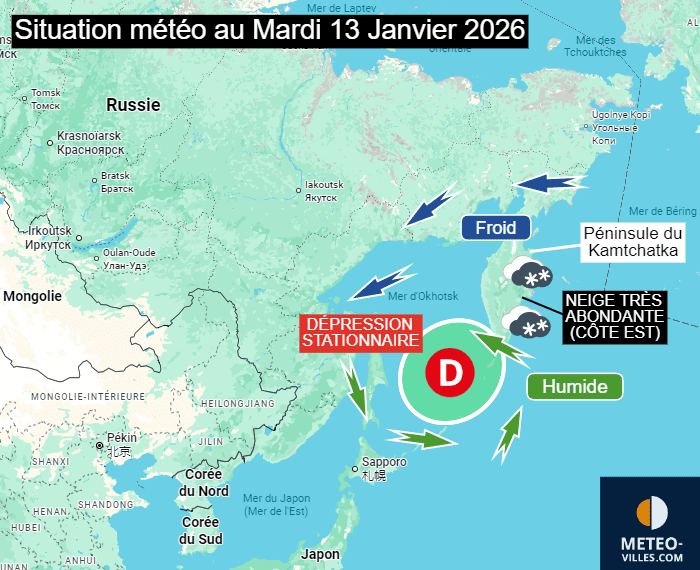 Carte expliquant la tempête de neige qui a frappé le Kamtchatka (Russie) la semaine dernière - Météo Villes