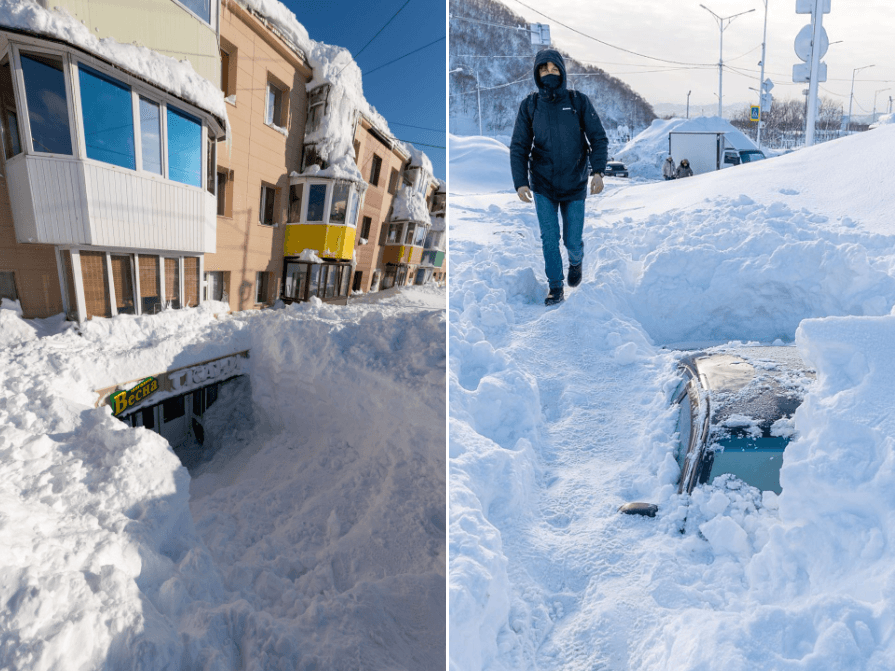 L'extrême est de la Russie fait la une depuis plusieurs jours. En cause, des chutes de neige remarquables dans le Kamtchatka avec des congères atteignant plusieurs mètres de haut et bloquant l'accès à certains bâtiments !