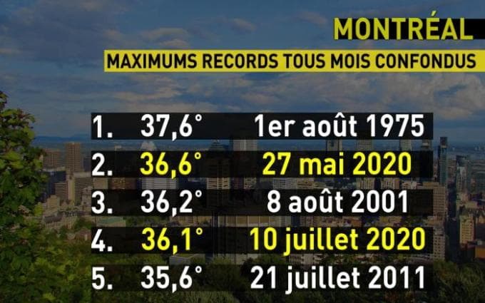 Les 5 journées les plus chaudes à Montréal depuis le début des relevés - via Météo Média