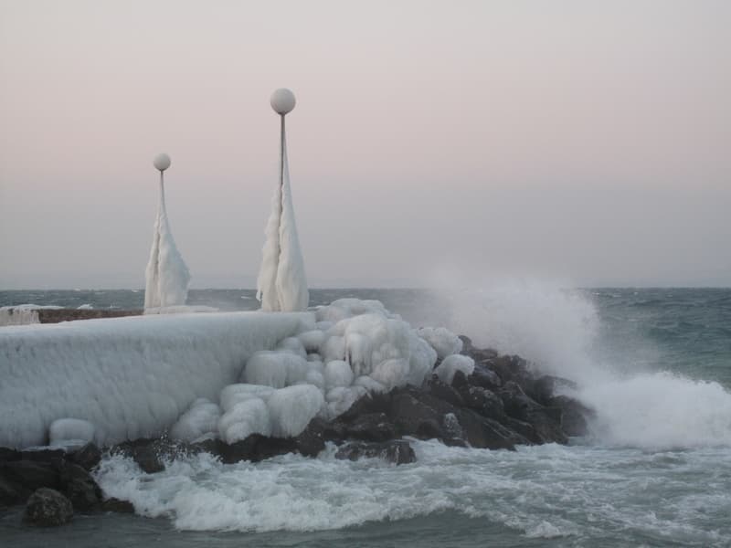 Port de Publier-Amphion (Haute-Savoie) sur les bords du Léman pris sous les glaces en raison de la bise - 10 février 2012 - Guillaume Guili