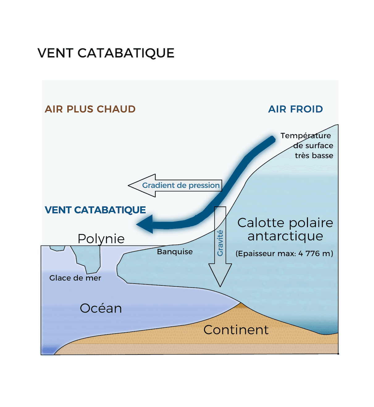 Schéma de fonctionnement du vent catabatique en Antarctique - extrait du livre "Météo Extrême"- éditions  Guillaume Séchet