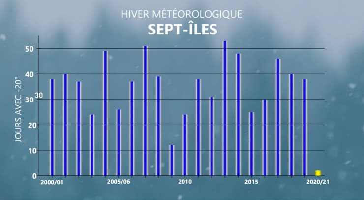 Nombre de jours avec -20°C ou moins à Sept-Îles (Québec) durant l'hiver météo - via Sophie Colombani