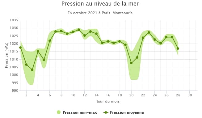 Pression atmosphérique à Paris-Montsouris depuis le début du mois d'octobre 2021 - via infoclimat.fr