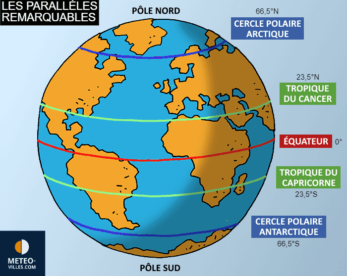 Schéma des parallèles remarquables (tropiques et cercles polaires) sur Terre - Météo Villes