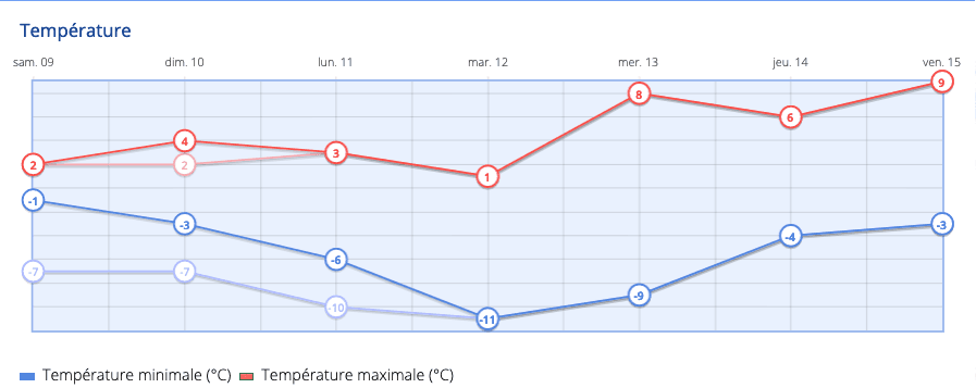 Prévisions de température à Madrid jusqu'au vendredi 15 janvier 2021 - AEMET