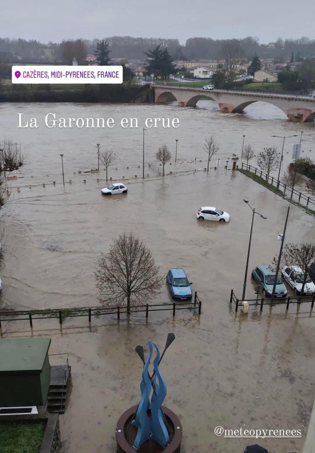 Débordement de la Garonne à Cazères (31) ce lundi 10 janvier 2022 - Alexandra Bgie via Météo-Pyrénées