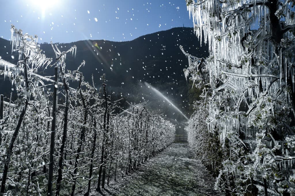 Les arboriculteurs se protègent tant bien que mal des gelées à La Palazzetta (Toscane) le 8 avril dernier – Via Twitter : @inquirerdotnet