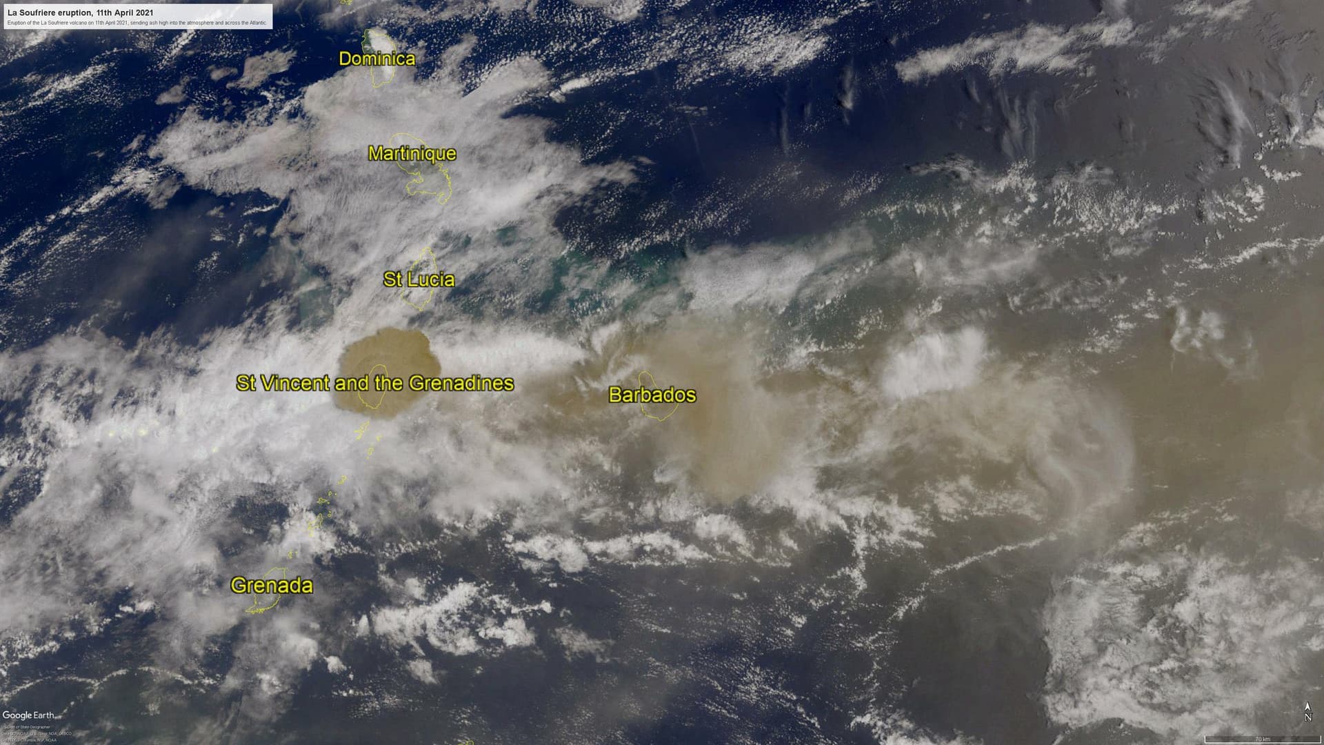 Outre des conséquences importantes aux alentours du volcan, les cendres s’étendent également aux îles limitrophes, les puissants vents d’Ouest poussant le panache vers l’Atlantique et la Barbade. Ce panache ne menace pas pour le moment les Antilles françaises.