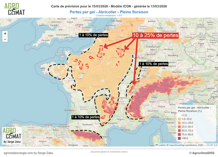 Risque de dégâts sur les abricotiers pour la matinée du dimanche 15 mars 2026 – Via Agrometeorologie.com