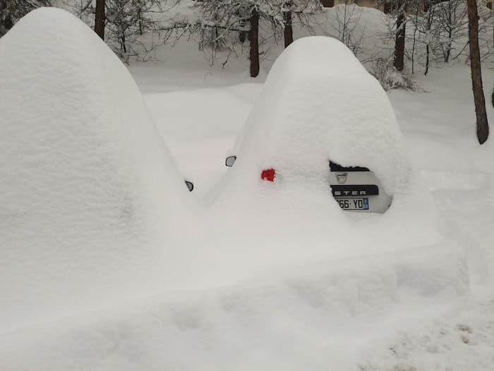 De fortes chutes perturbent la circulation entre Grenoble, Chambéry, Annecy et Genève, avec 5 à 15 cm dans les vallées. Dans les Hautes-Alpes, 7 000 foyers sont privés d’électricité et il tombe jusqu’à 1 à 1,20 m de neige dans le massif du Pelvoux.