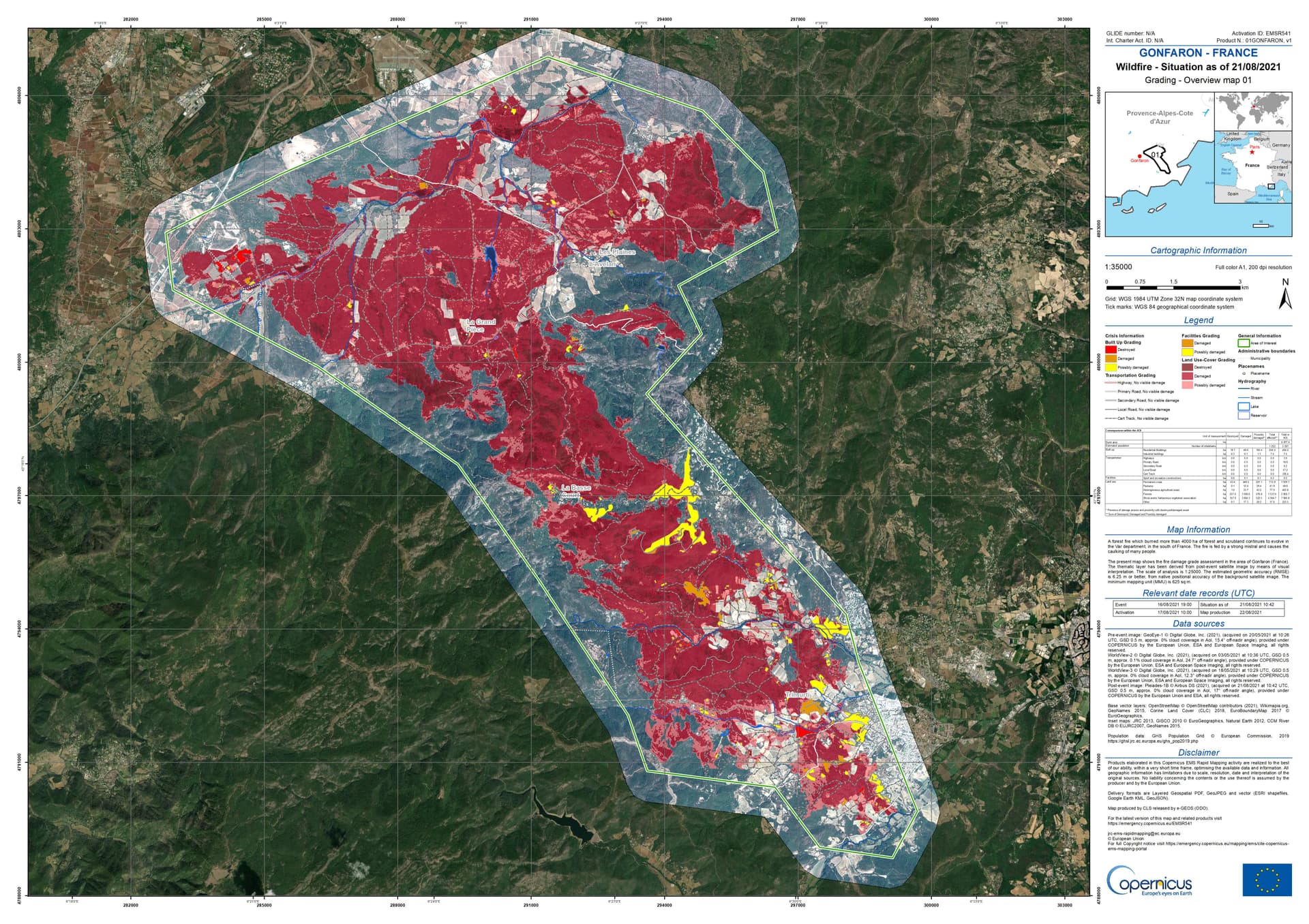 Périmètre des zones incendiées dans le Var au 21 aout 2021 - Copernicus EMS / Union Européenne