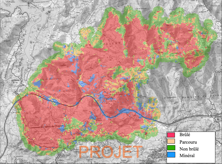Ce 16 août, un incendie de forêt s'est déclenché sur la commune de Gonfaron, dans le département du Var. Après plusieurs jours d'intenses efforts (plus d'un milliers d'Hommes déployés), ce feu a été entièrement éteint. Malheureusement, ce dernier a provoqué le décès de deux personnes, et a défiguré le massif des Maures en ayant ravagé une surface de 6977 hectares selon les toutes dernières observations satellitaires.