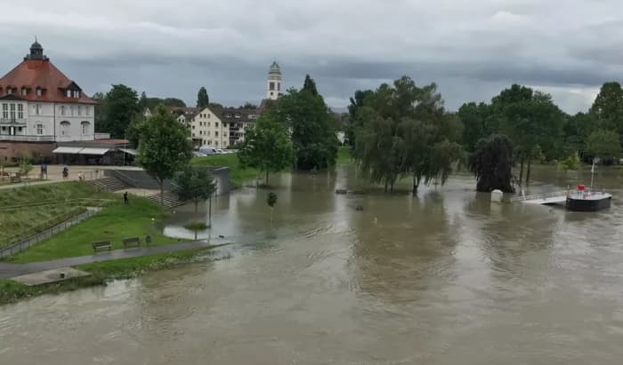 Crue du Rhin à Kehl à la frontière franco-allemande le jeudi 15 juillet 2021 - photo Catherine Munsch / FranceTV