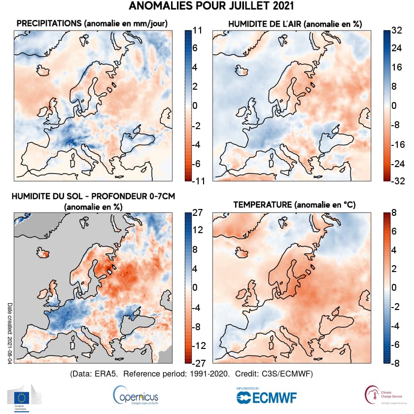 Anomalies climatiques en Europe en juillet 2021 - Copernicus Climate Change Service