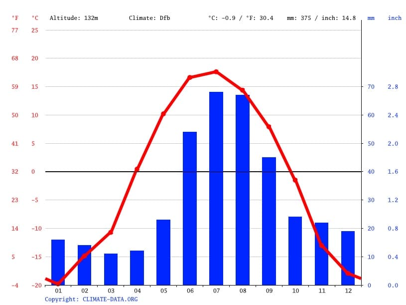 Évolution des températures annuelles à Fairbanks (Alaska) – Climate-data.org