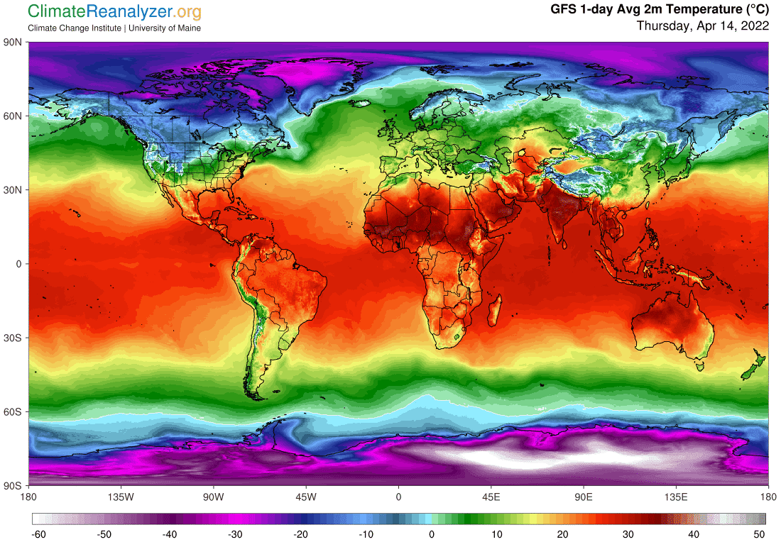 Températures observées dans le monde en ce 14 avril 2022 – Climate Reanalyzer