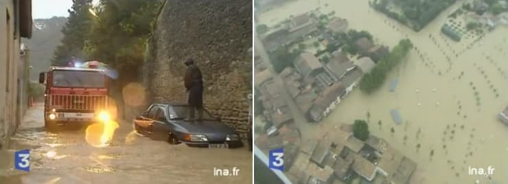 Sommières dans le Gard ravagée par les inondations le 9 septembre 2002 - via INA