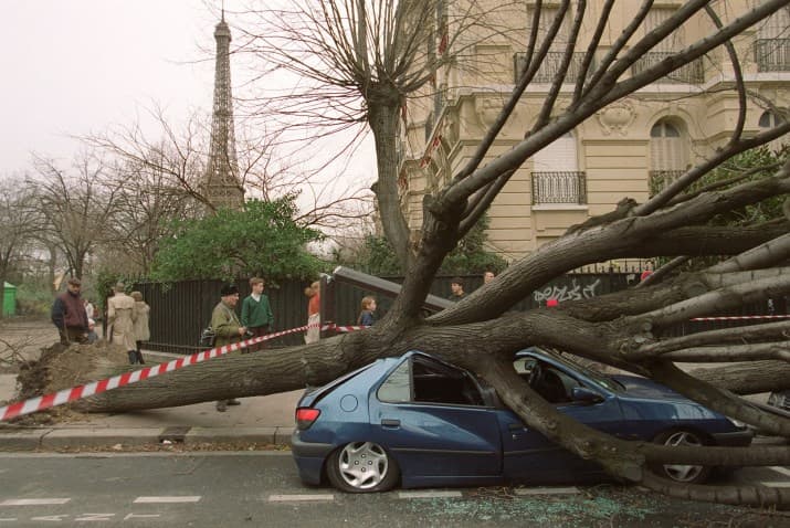 Les dégâts à Paris, au matin du 26 décembre 1999, après le passage de la tempête Lothar (photo RTL)