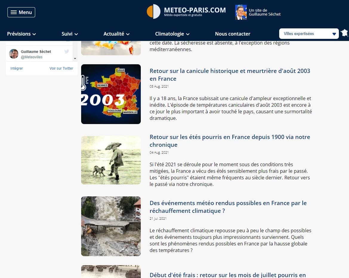 Capture d'écran de la Chronique météo depuis 1850 - Météo-Villes