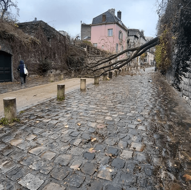 Arbre couché rue de l’abrevoir à Montmartre ce dimanche 27 décembre suite aux fortes rafales – Via Instagram : @anne_m_fourtines75