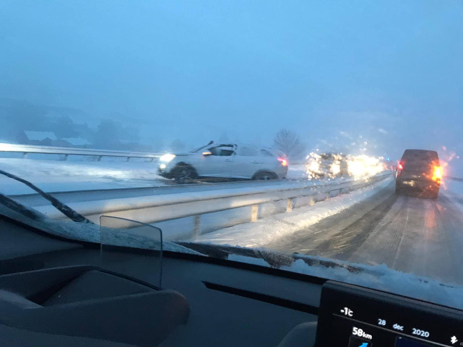 Accident sur l'A75 près du Col de la Fageole en fin de journée du 28 décembre - Via twitter : @GWoznica et @LCI