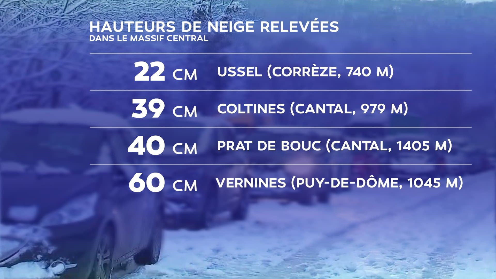 Cumuls de neige sur le Massif-Central durant la nuit du 27 au 28 décembre – Via twitter @GWoznica et @LCI