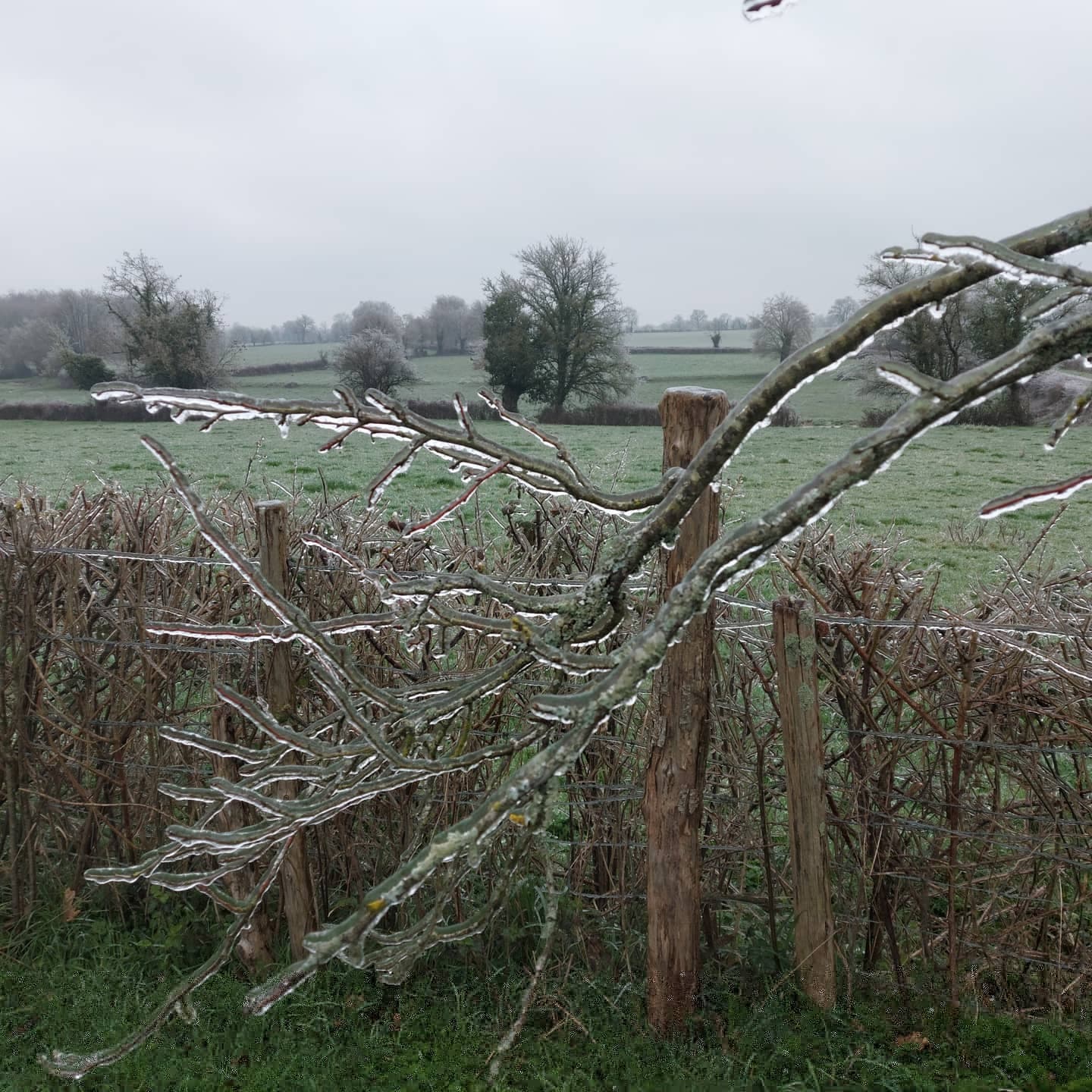 Couche de glace suite à un épisode de pluies verglaçantes cette semaine sur le Centre-Ouest du pays  - Via twitter : @rom1chauviere