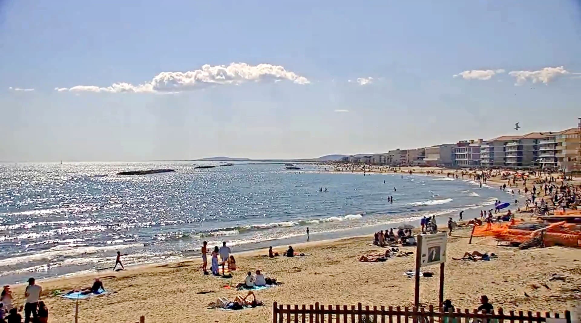 Les plages de Palavas-les-Flots étaient noires de mondes ce 6 avril en raison du soleil et d'un temps chaud pour la période - Webcam via @viewsurf