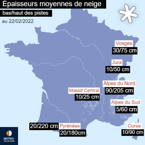 Résumé de l'épaisseur du manteau neigeux au mardi 22 février 2022 - Météo Villes