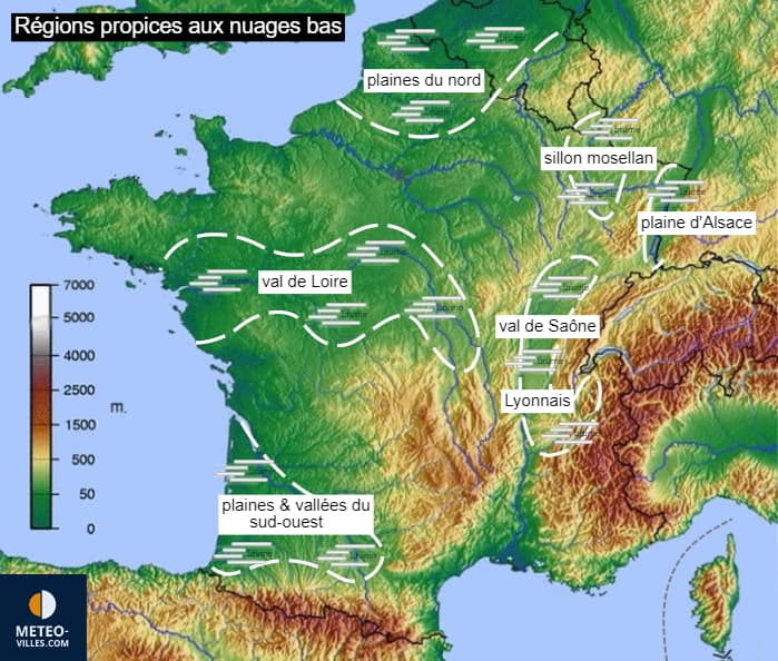 Carte des régions propices aux nuages bas en France - Météo Villes