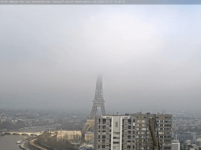 Dissipation rapide des nuages bas sur Paris en après-midi du jeudi 13 janvier 2022 - webcam www.meteo-paris.com