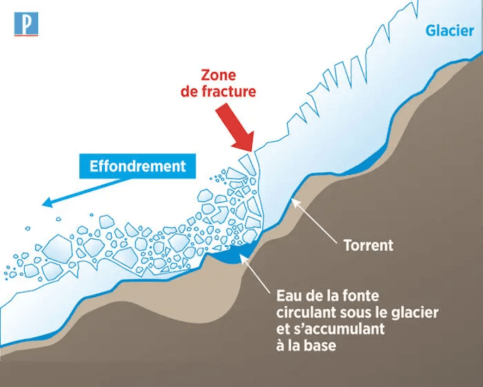 Schéma montrant l'effondrement d'un glacier - infographie Le Parisien