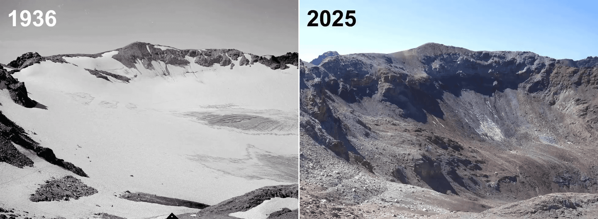 Disparition totale du glacier Vadret da Triazza (Suisse) entre 1936 et 2025 - via Melaine Le Roy