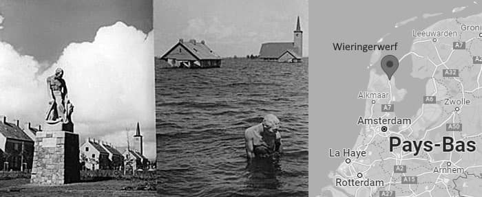 La commune de Wieringerwerf (Pays-Bas) sous plus de 2 mètre d'eau le 1er février 1953 - via herodote.net