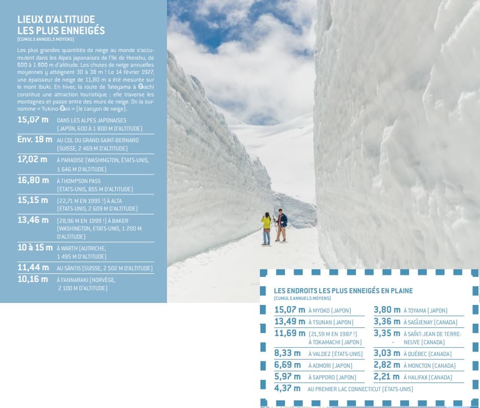 Cumuls de neige remarquables en altitude et en plaine dans le monde - A retrouver page 70 du livre METEO EXTREME