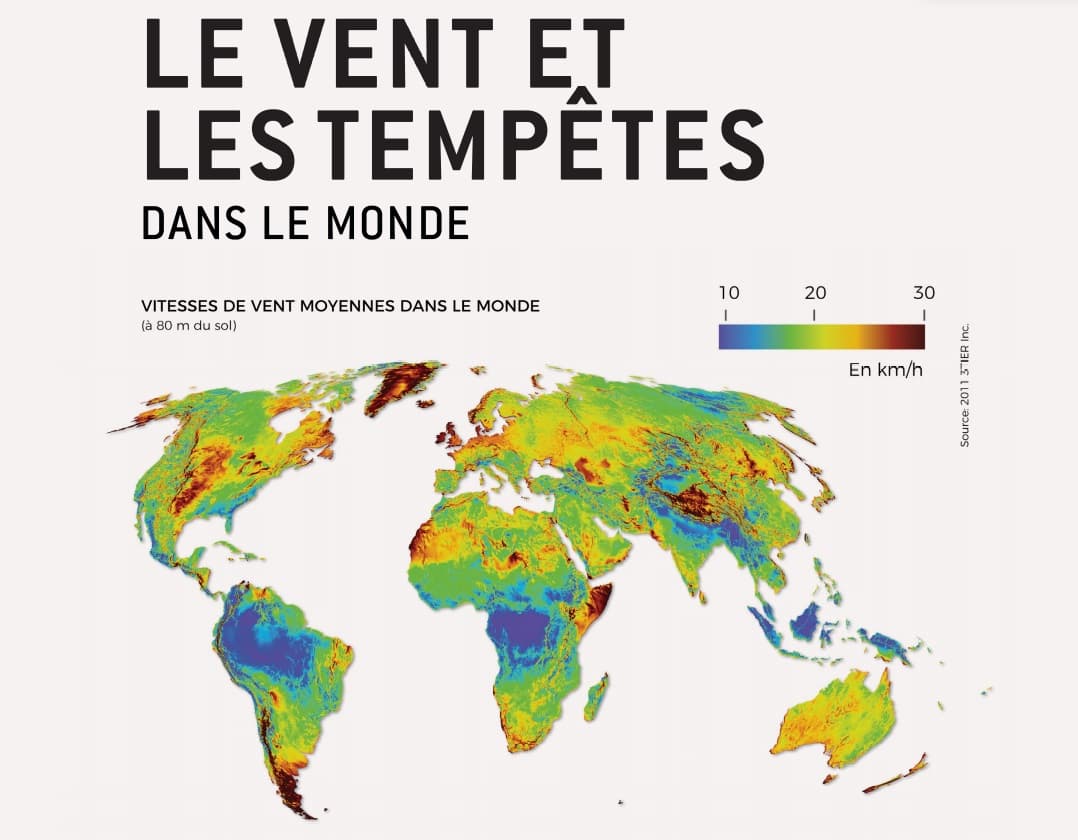 Vitesses de vent moyen à l'échelle du globe - A retrouver page 122 du livre METEO EXTREME