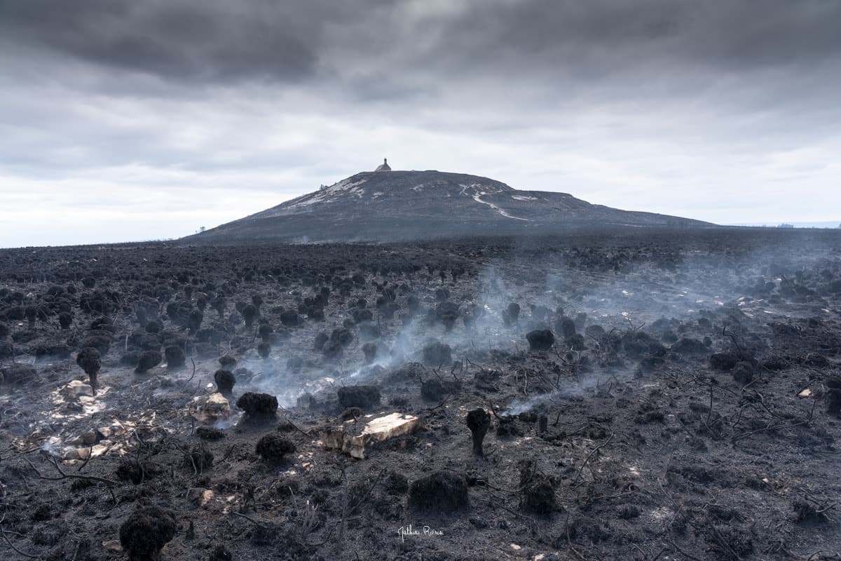 Avec une sécheresse généralisée, d'importants incendies touchent aussi les régions de la moitié nord. Le plus marquant se produit en Bretagne, dans le département du Finistère ! Le feu prend en après-midi du lundi 18 juillet 2022 dans les Monts d'Arrée sur la commune de Brasparts, alors que le département du Finistère venait d'enregistrer les premiers 40°C de son histoire ! Le brasier a été actif durant deux jours, détruisant un total de 1.725 hectares ! Il a laissé des paysages de désolation sur de vastes étendues, une scène rare dans cette région.