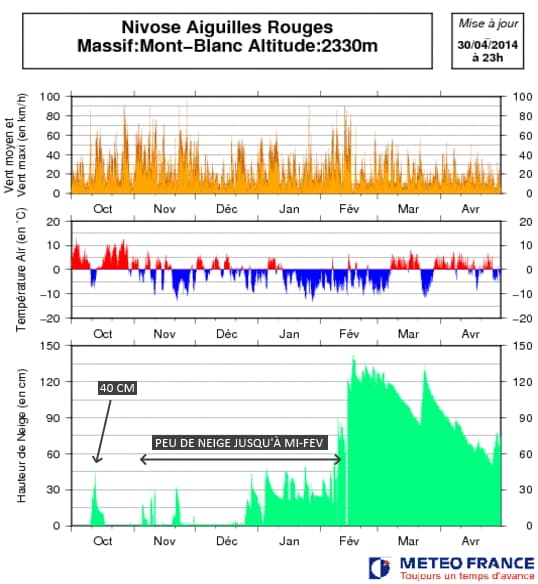 Nivose à 2330m dans le Massif du Mont-Blanc durant la saison hivernale 2013-2014 - via Météo France