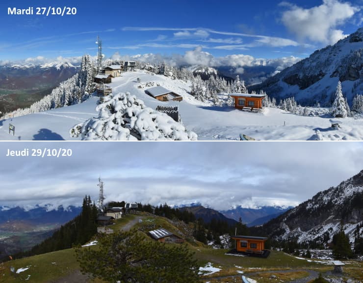 Comparaison de la Sambuy (Haute-Savoie) entre le mardi 27 et le jeudi 29 octobre 2020 - webcam skaping