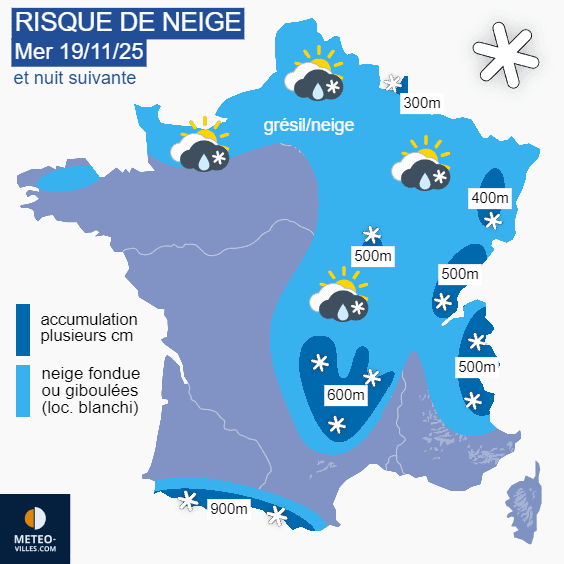 Risque de neige et/ou giboulées ce mercredi 19 novembre 2025 et la nuit suivante - Météo Villes