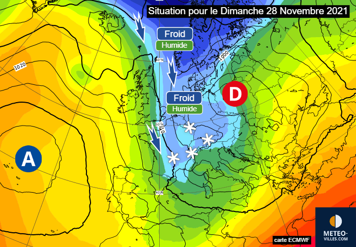 Situation à échelle continentale pour le dimanche 28 novembre 2021 - via ECMWF