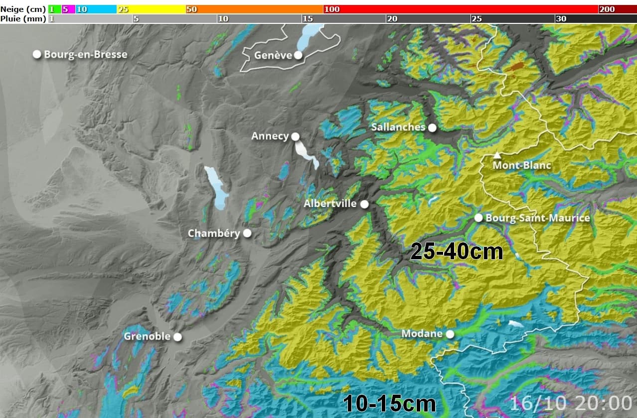 Cumuls de neige envisagés du 11 au 16 Octobre sur les Alpes du Nord - Via skipass