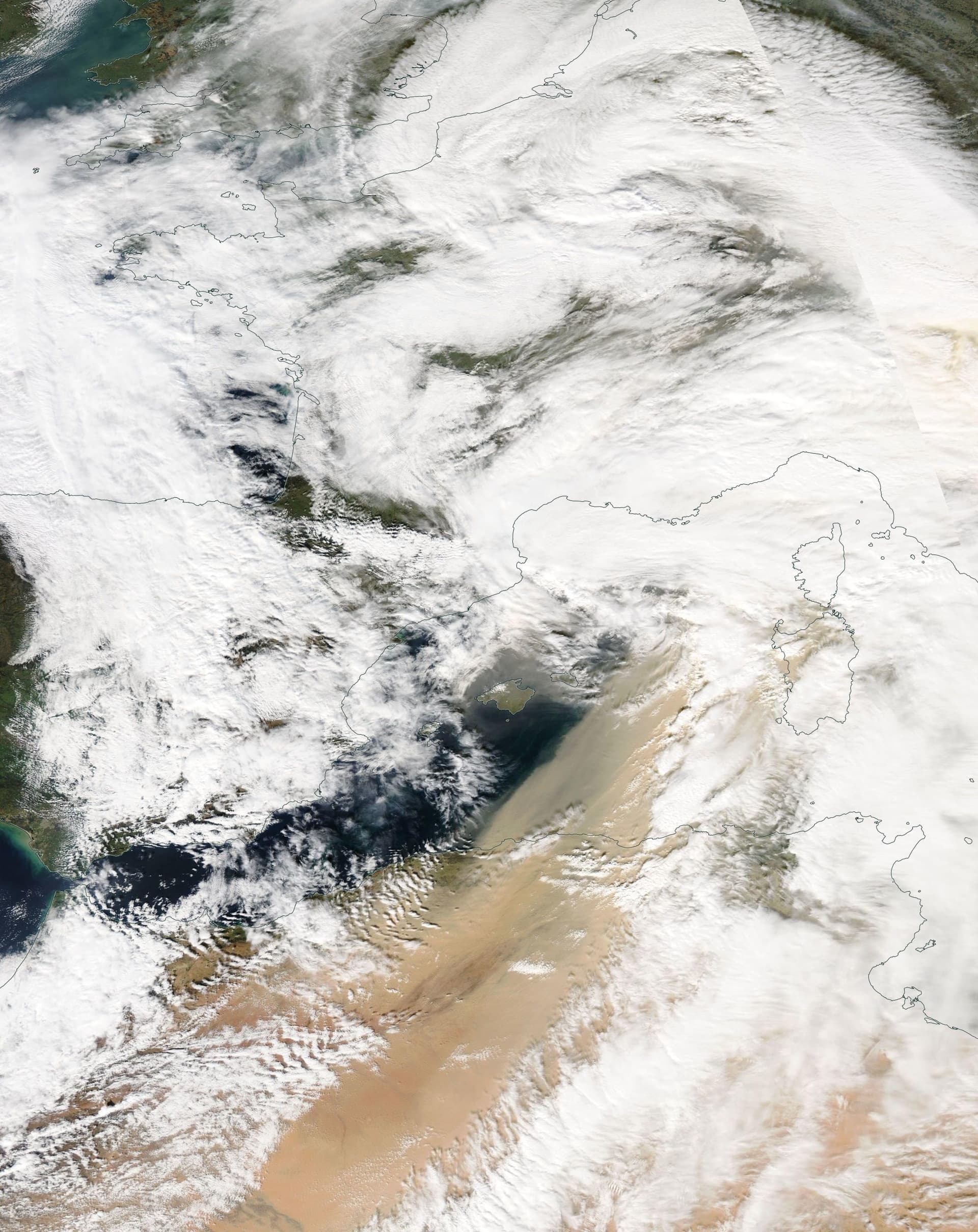 Remontée de sable Saharien vers la France - 6 février 2021 - Satellite Terra / NASA